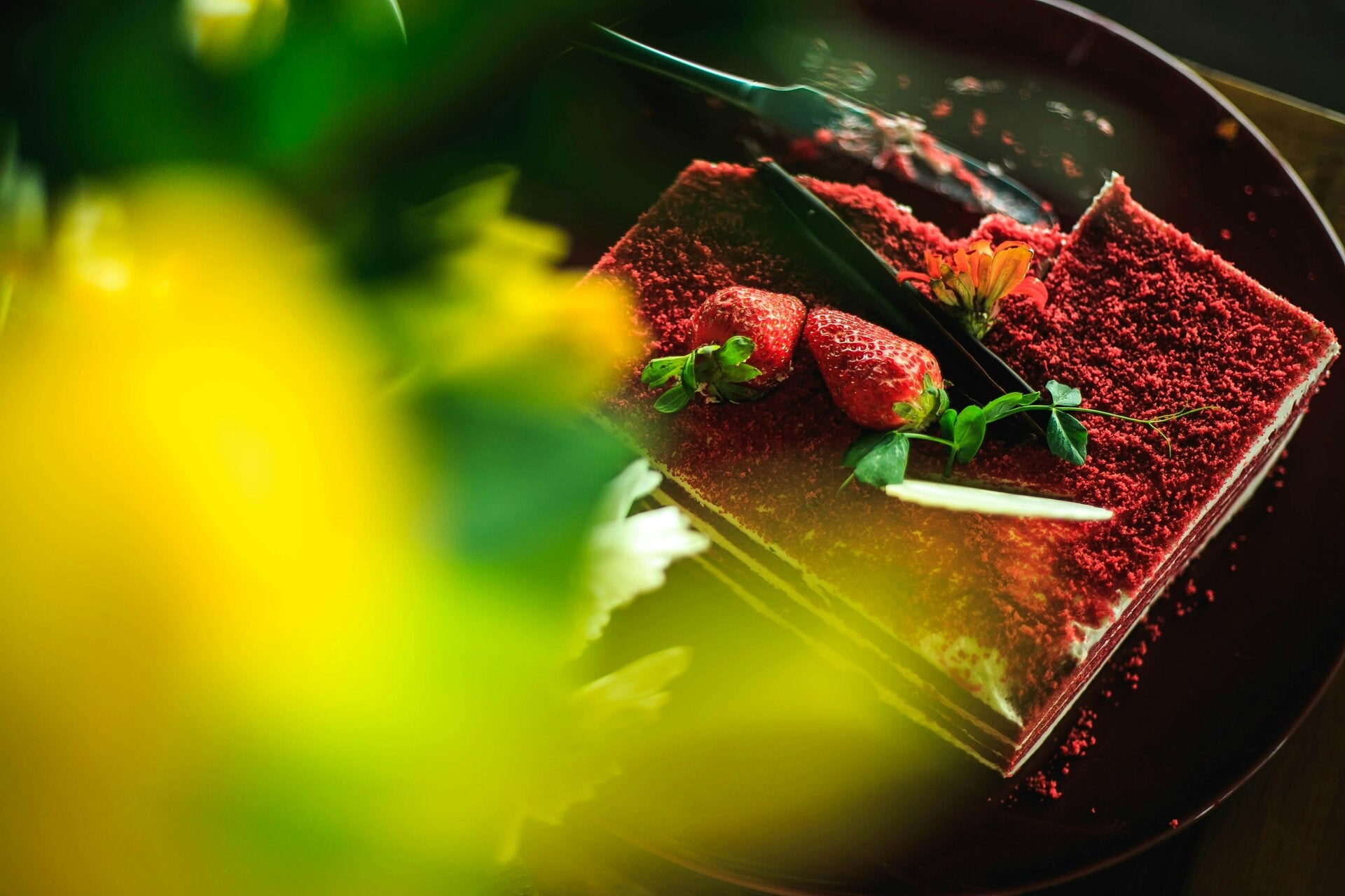 Savor the smooth and tangy flavor of our red velvet cake, topped with a creamy cream cheese frosting.